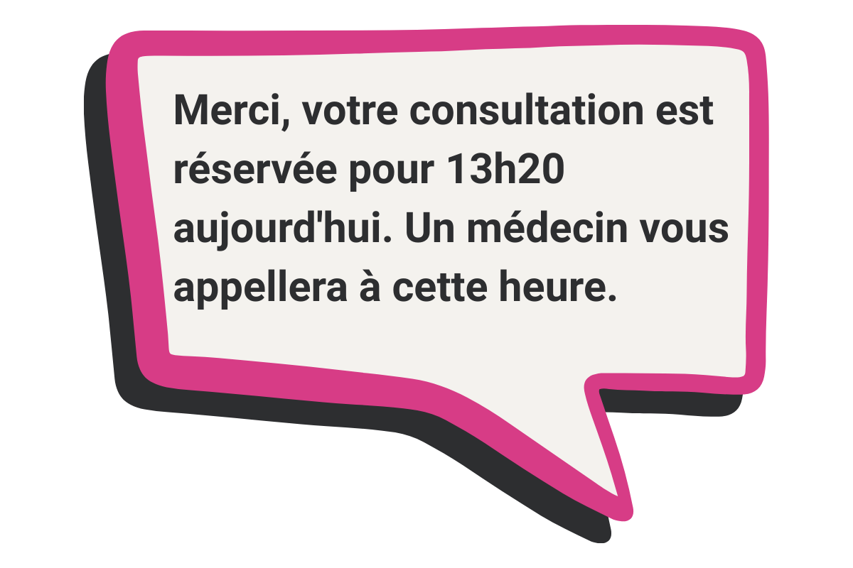 Once the request has been accepted, the patient receives an SMS with their assigned appointment time when the clinician will call them.