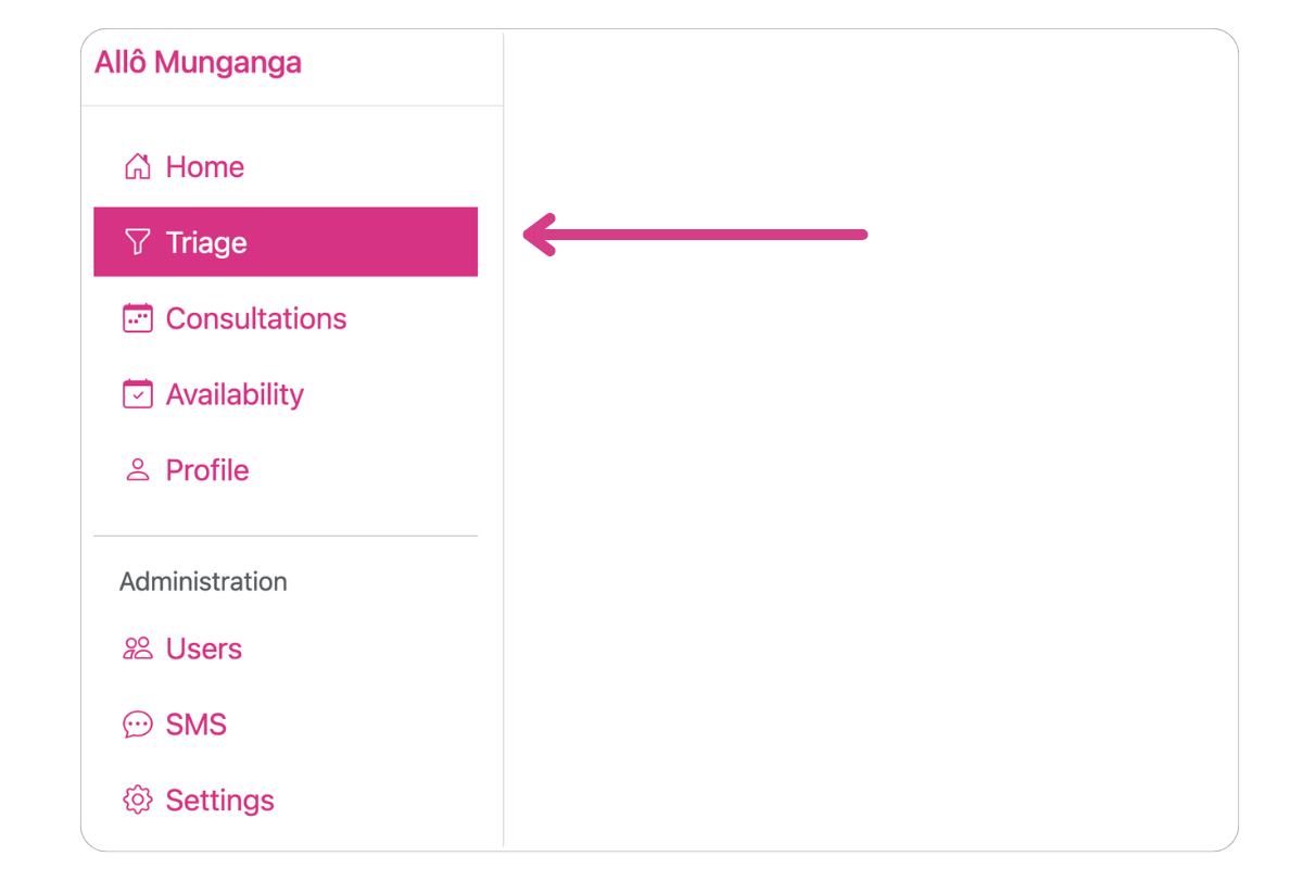 The Triage page shows incoming consultation requests in real-time. It allows triage nurses the ability to review consultation requests to speak to a clinician.